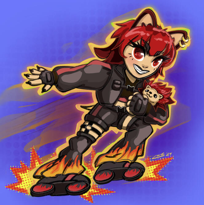 Mars is a thrill seeking hedgehog girl from outer space who wants nothing more than to be the fastest thing in the universe! She is never seen without her rollerblades (she sleeps with them on?!?)